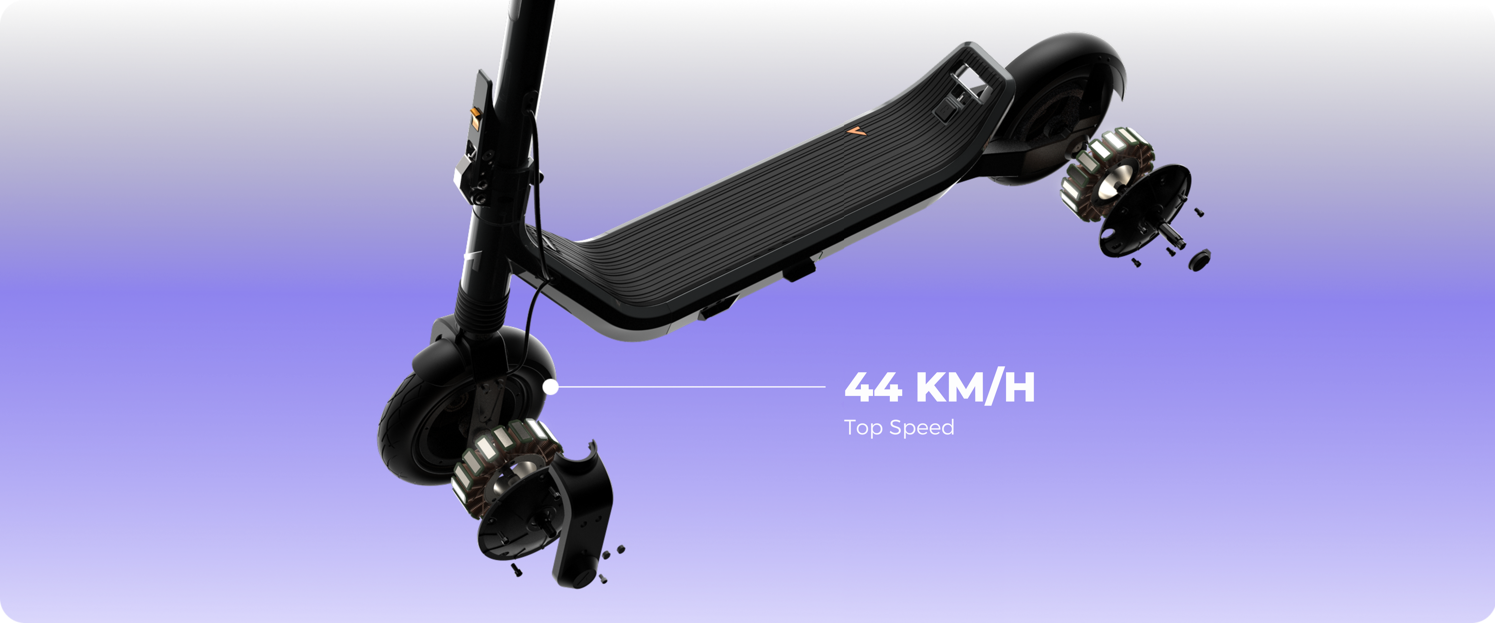 Our 9-inch, tubeless tires come pre-filled with PunctureGuard gel to seal punctures the moment they happen—no flats, no panic. Smart motor connectors make wheel swaps fast and painless, while every tire is certified for 1,000 KM of real-world riding.