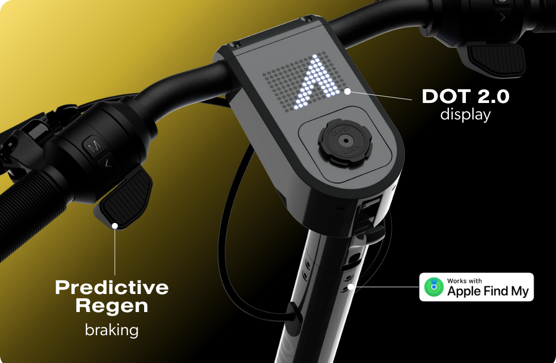 With 20% more travel, the Airflow suspension soaks up deeper potholes and sharper impacts with ease. New active rubber dampening controls rebound for a softer, calmer, more stable ride. Combined with 10-inch tires and increased ground clearance, the City 2.0 delivers its smoothest, most confidence-inspiring ride yet.